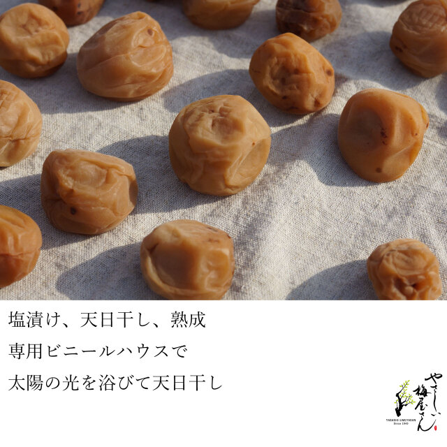 定期購入塩漬けした梅は夏の太陽の下で専用加工施設(有機専用ビニールハウス)で天日干し